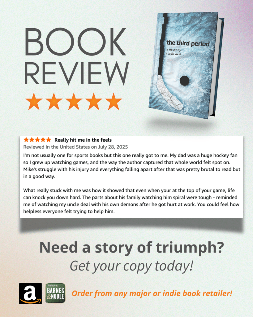 Released July 22, The Third Period is already receiving stellar reviews. You don’t have to be a hockey fan to enjoy this family drama. Order your copy of The Third Period from any major or indie book retailer TODAY!
