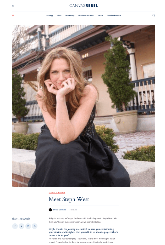 In the Media, NewcrossCanvas Rebel catches up with Steph West April 3, 2026 Steph West Keep reading HERE. Share this: Share on X (Opens in new window) X Share on Facebook (Opens in new window) Facebook Share on LinkedIn (Opens in new window) LinkedIn Share on Threads (Opens in new window) Threads Like Loading... Related